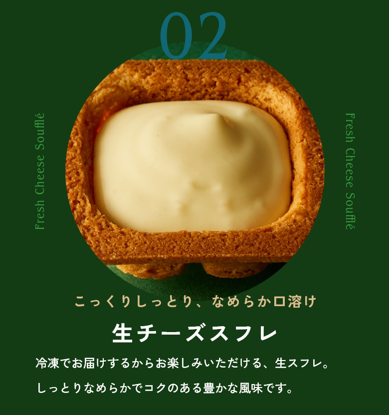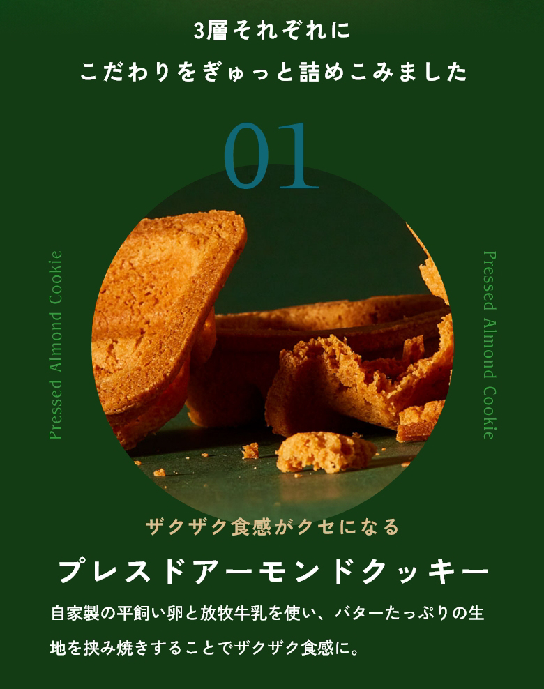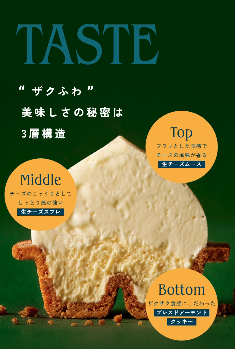ナチュラルチーズ(生乳(国産))、バター、凍結卵白(卵白、砂糖、食塩)、プロセスチーズ、小麦粉、アーモンド、粉糖、牛乳(生乳(北海道日高町産))、砂糖、生クリーム、食用精製加工油脂、液卵(鶏卵(北海道新冠町産))、卵黄、乳等を主要原料とする食品、コーンスターチ、準チョコレート、食塩/トレハロース、乳化剤、香料、(一部に乳成分・卵・小麦を含む)